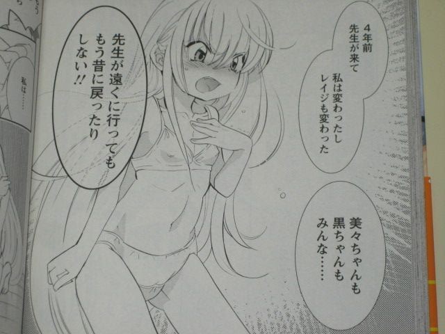 第12巻では、宝院先生との関係や転任など、青木先生にさまざまな困難が襲い掛かる。また第12巻でも、女子小学生・九重りんのサービスシーンが満載。
